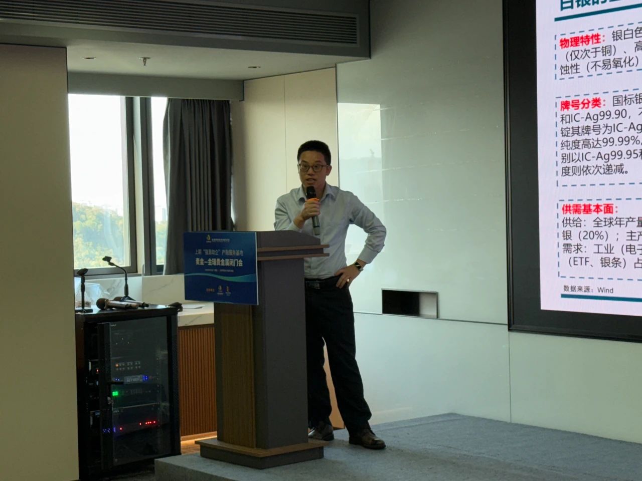 江铜南方非铜事业部副总裁陈军解读白银市场,介绍其物理特性与牌号分类,分析供需及进出口格局——全球年产量约3万吨,中国是主产区之一,贸易集中于伦敦金银协会等四大核心市场。他分享自营型、服务型业务及基差贸易等案例,强调创新模式对打造“华南有色金属综合服务运营商”的关键作用。
