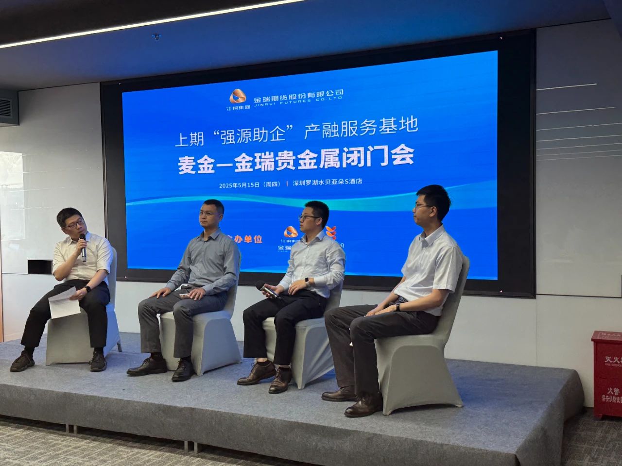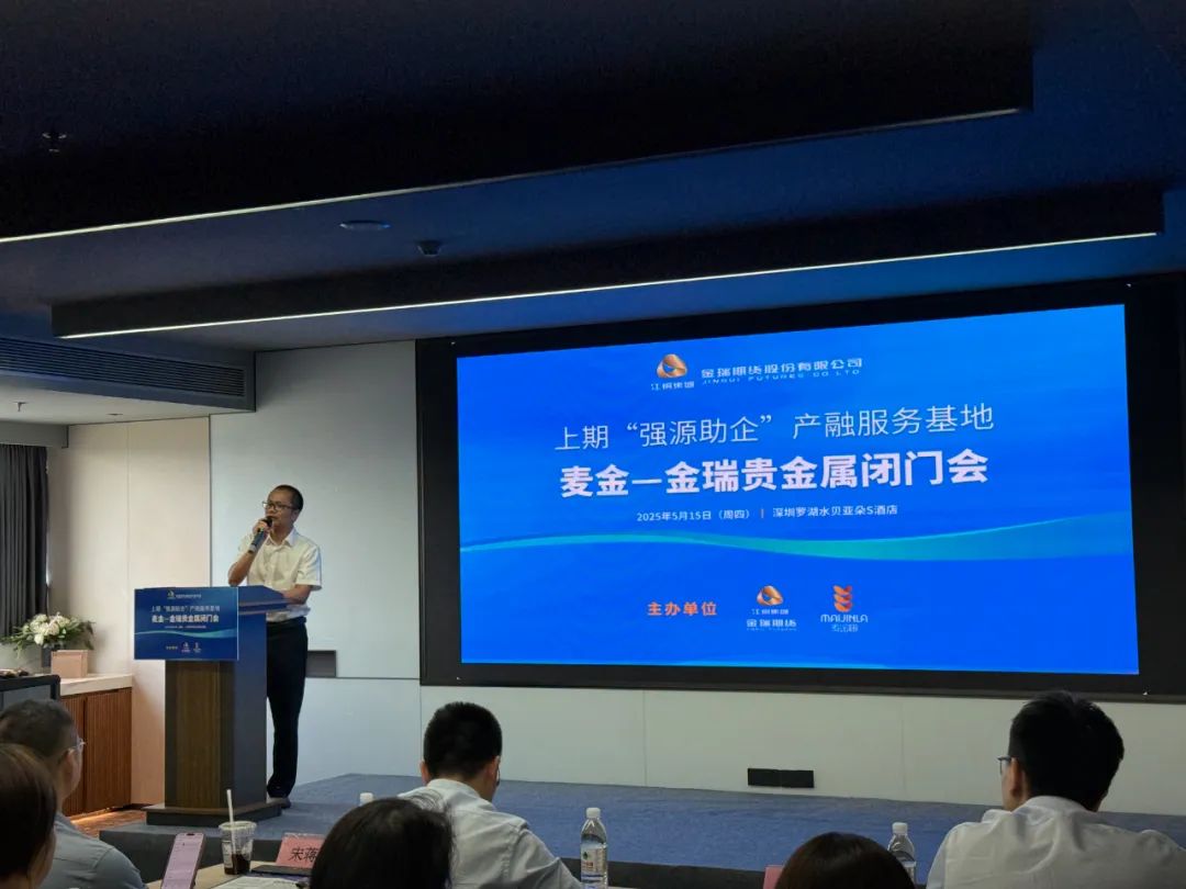 5月15日,由上海期货交易所与上海国际能源交易中心重点支持,金瑞期货股份有限公司(以下简称“金瑞期货”)联合深圳麦金网络科技有限公司(以下简称“麦金科技”)主办的上期“强源助企”产融服务基地贵金属闭门会在深圳顺利举行。本次会议旨在加强贵金属产业风险管理意识,彰显产融基地企业的示范效能,提升风险管理工具运用水平,助力产业高质量发展。