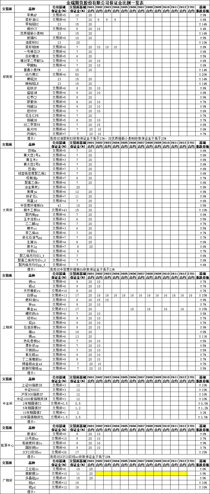 保证金比例提示2026-01-20